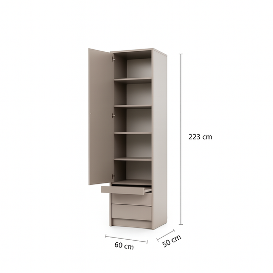 Genius Spacious Wardrobe with Shelves and Pull-Out Nightstand