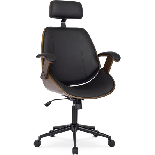 Elite FABIAN Tufted Executive Chair with Bentwood Frame – Walnut / Black Faux Leather Loft Style