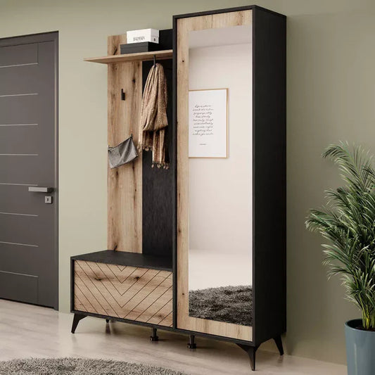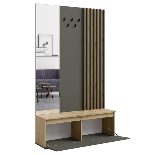 Nelly Hallway Wardrobe – Graphite / Artisan Slats / Mirror with Cushion
