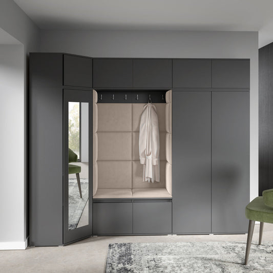 PK Emi 6 Hallway Wardrobe Graphite- Upholstered Panels in Various Colours