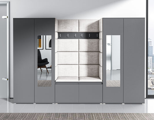 PK Emi 10 Hallway Wardrobe Graphite - Upholstered Panels in Various Colours
