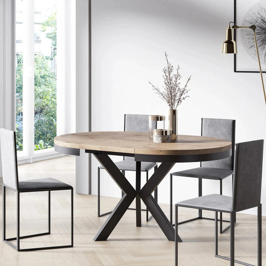 Elite LUKAS Round Extendable Dining Table 100–250 cm Rustic Oak Modern Loft