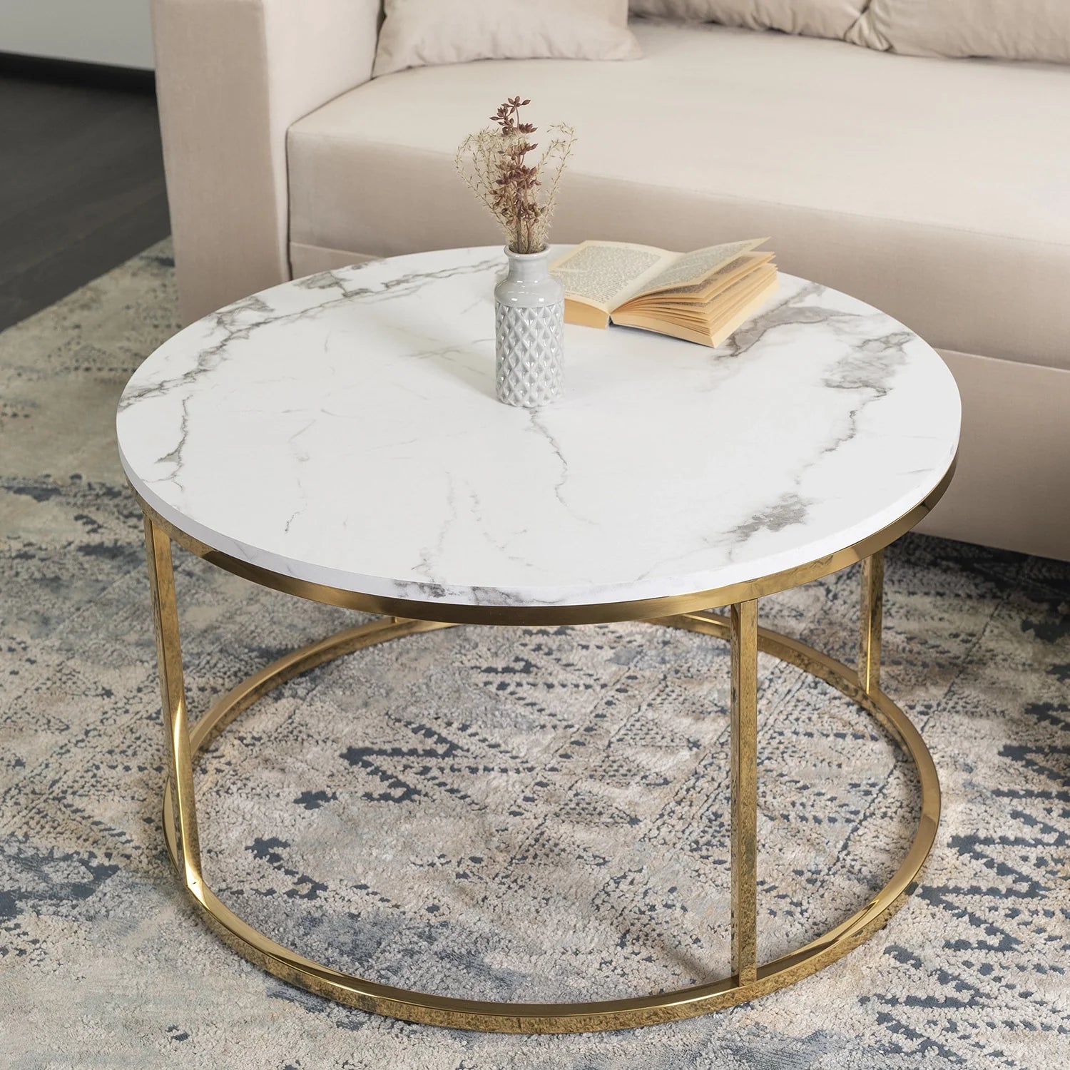 Elite CLIFF MAX White Marble/Gold Coffee Table
