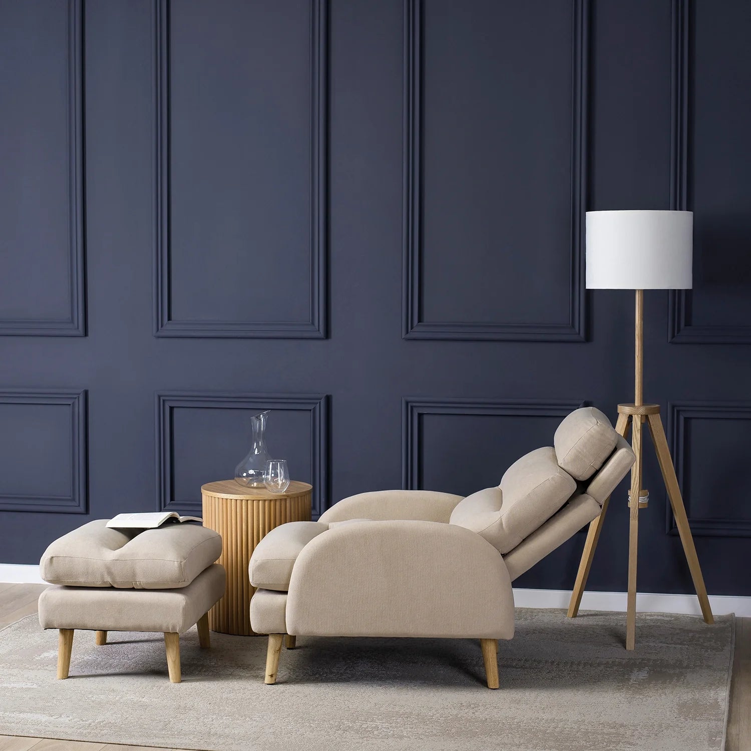 Elite HENRY Beige Recliner Armchair with Footrest