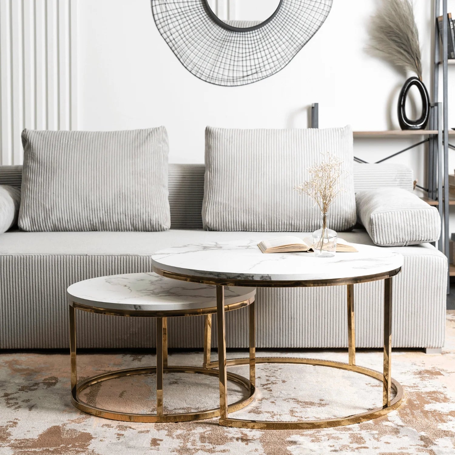 Elite OLIS MAX Coffee Table Set – Marble/Gold