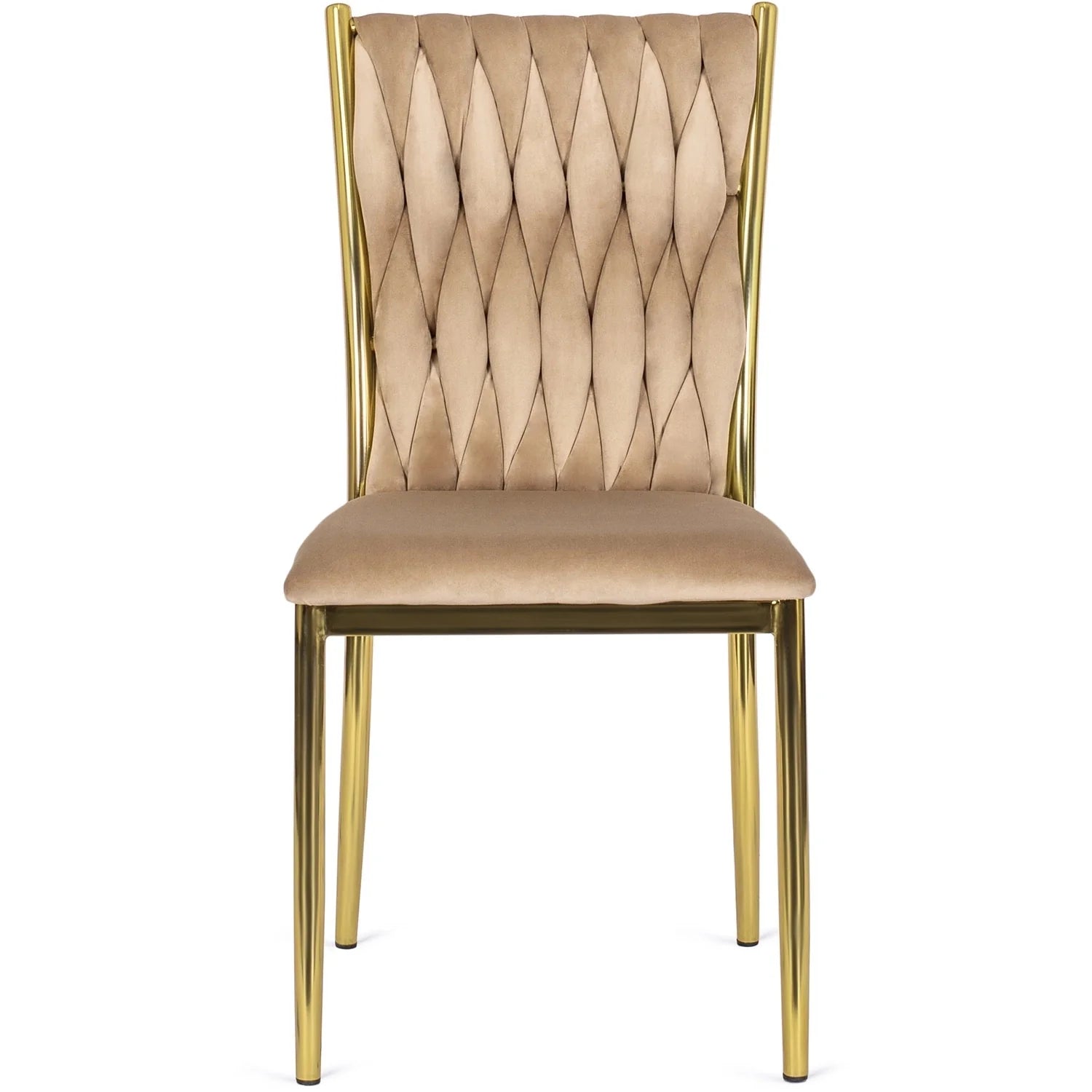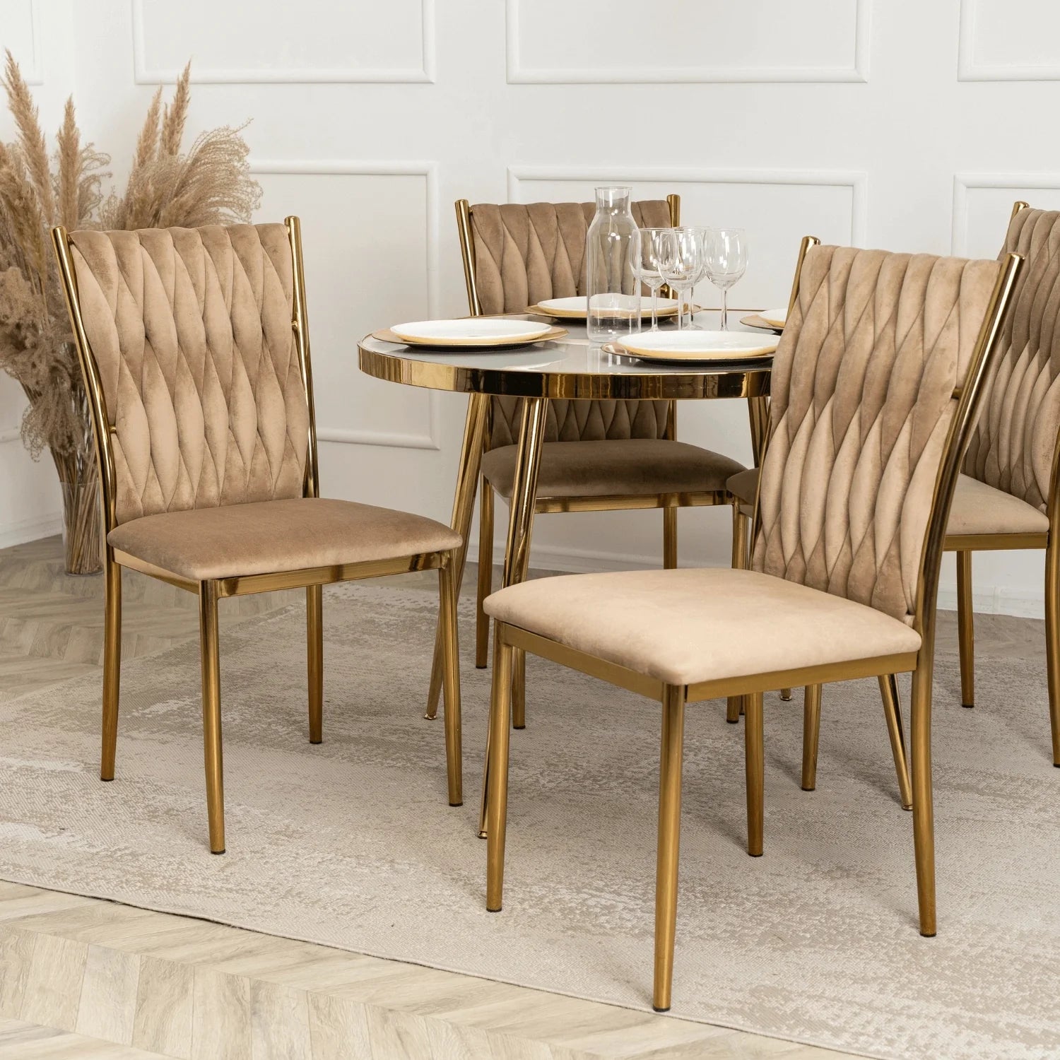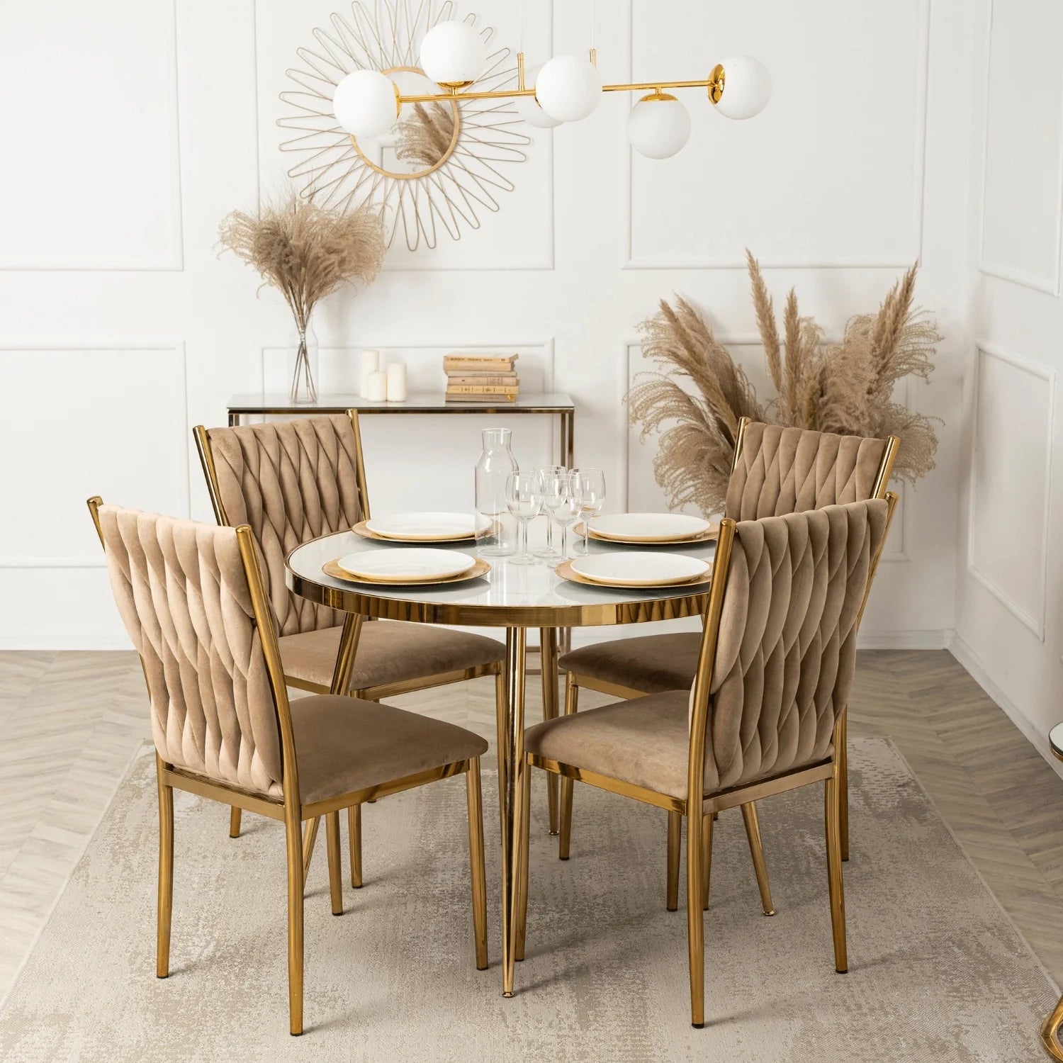 Elite TINGA Dining Set – 100 cm White Marble/Gold Round Table & 4 Beige DAN Chairs