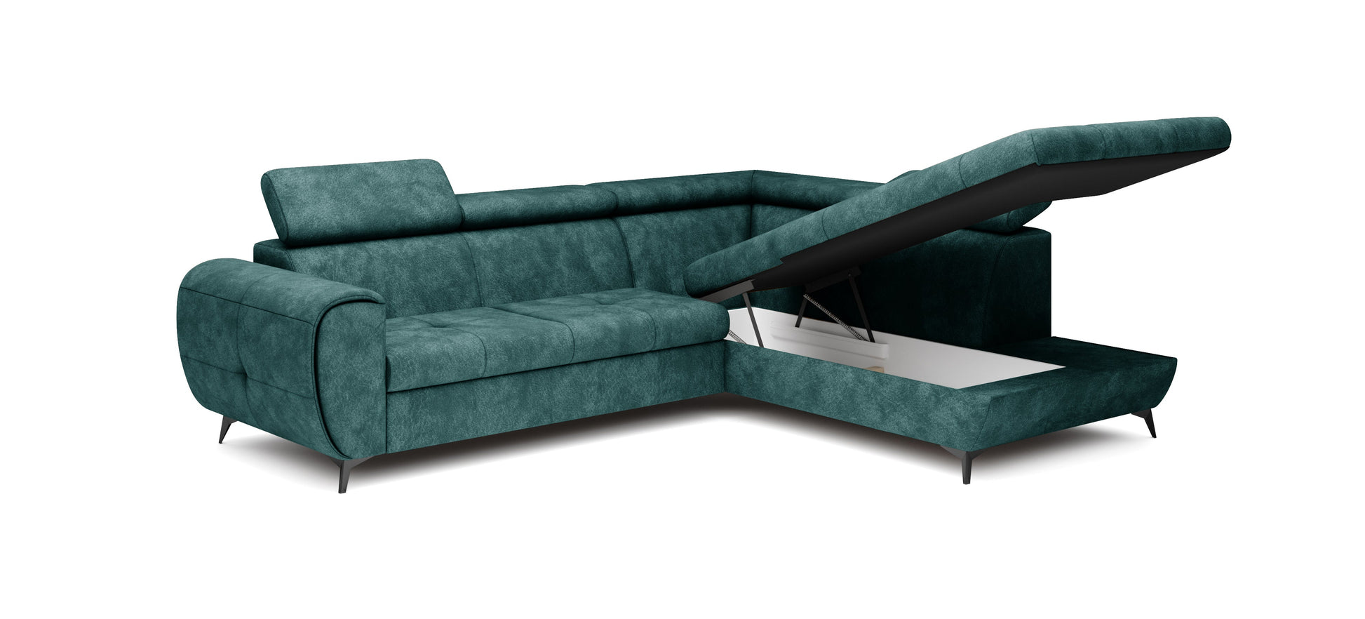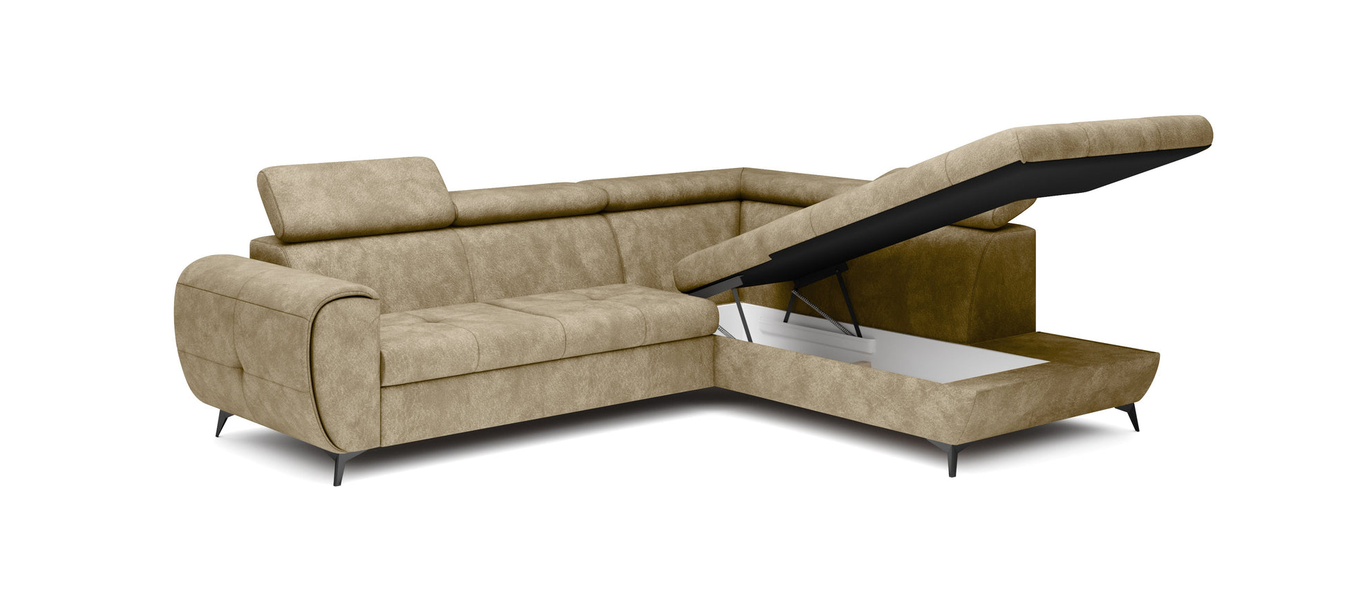 Lask MONA PIK Corner Sofa Bed with Adjustable Headrests – 260 x 217 cm – Left or Right Configuration