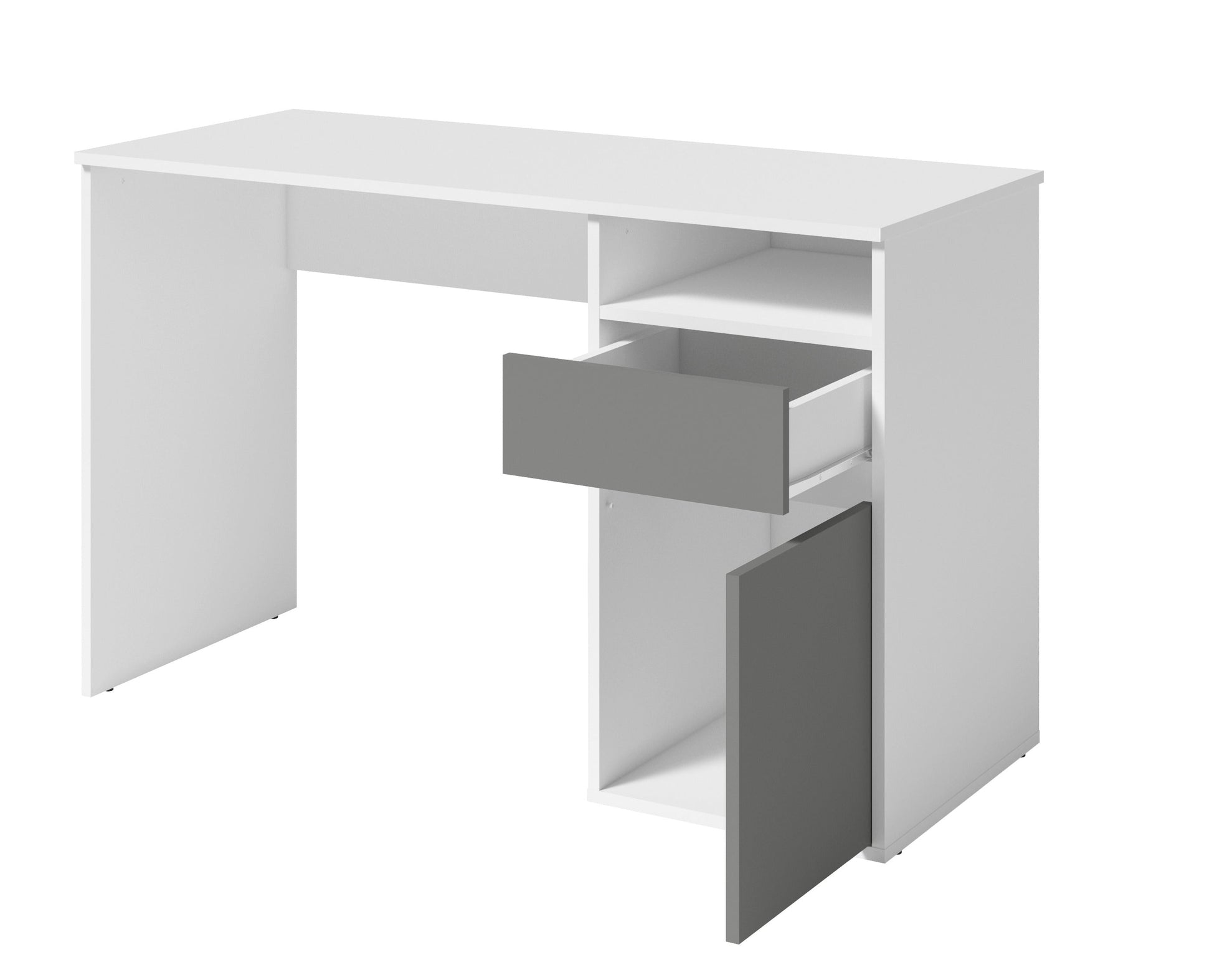 MO Billa Desk with Cabinet and Drawer – White with Graphite Fronts