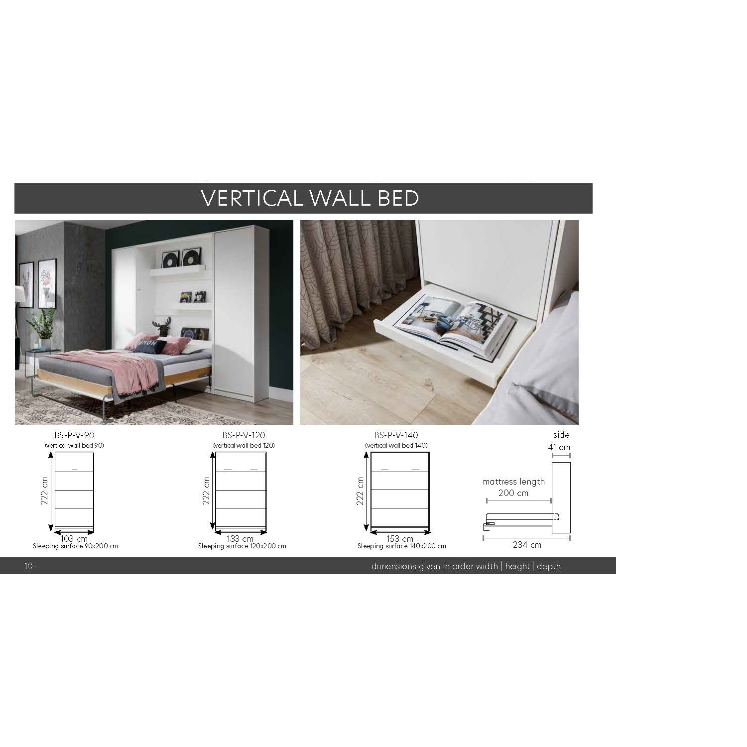 NE BASIC Murphy Bed Vertical Black and Lancelot Oak 90,120,140 x 200 cm Mattress