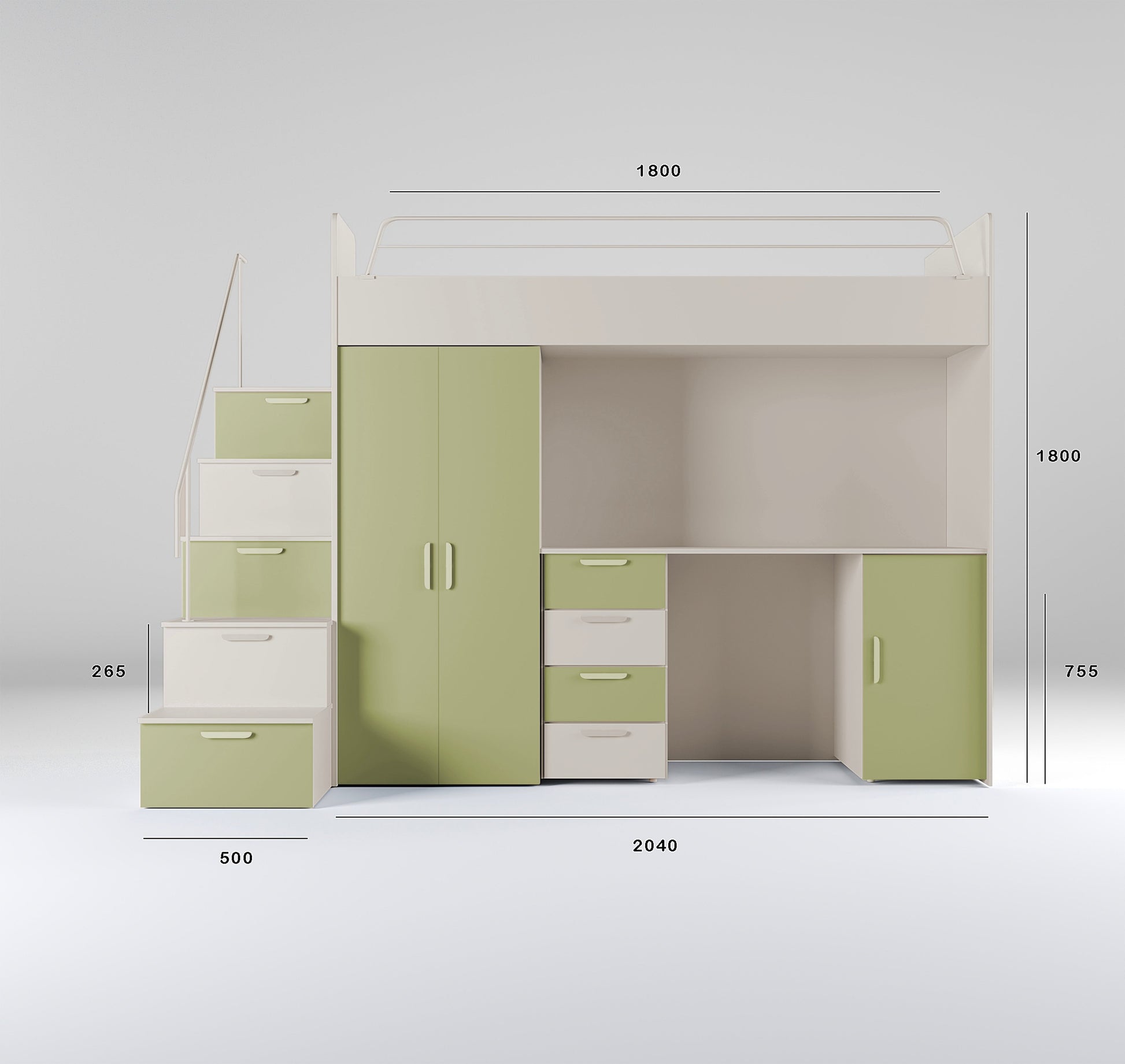 Double: 135 × 190 cm mattress