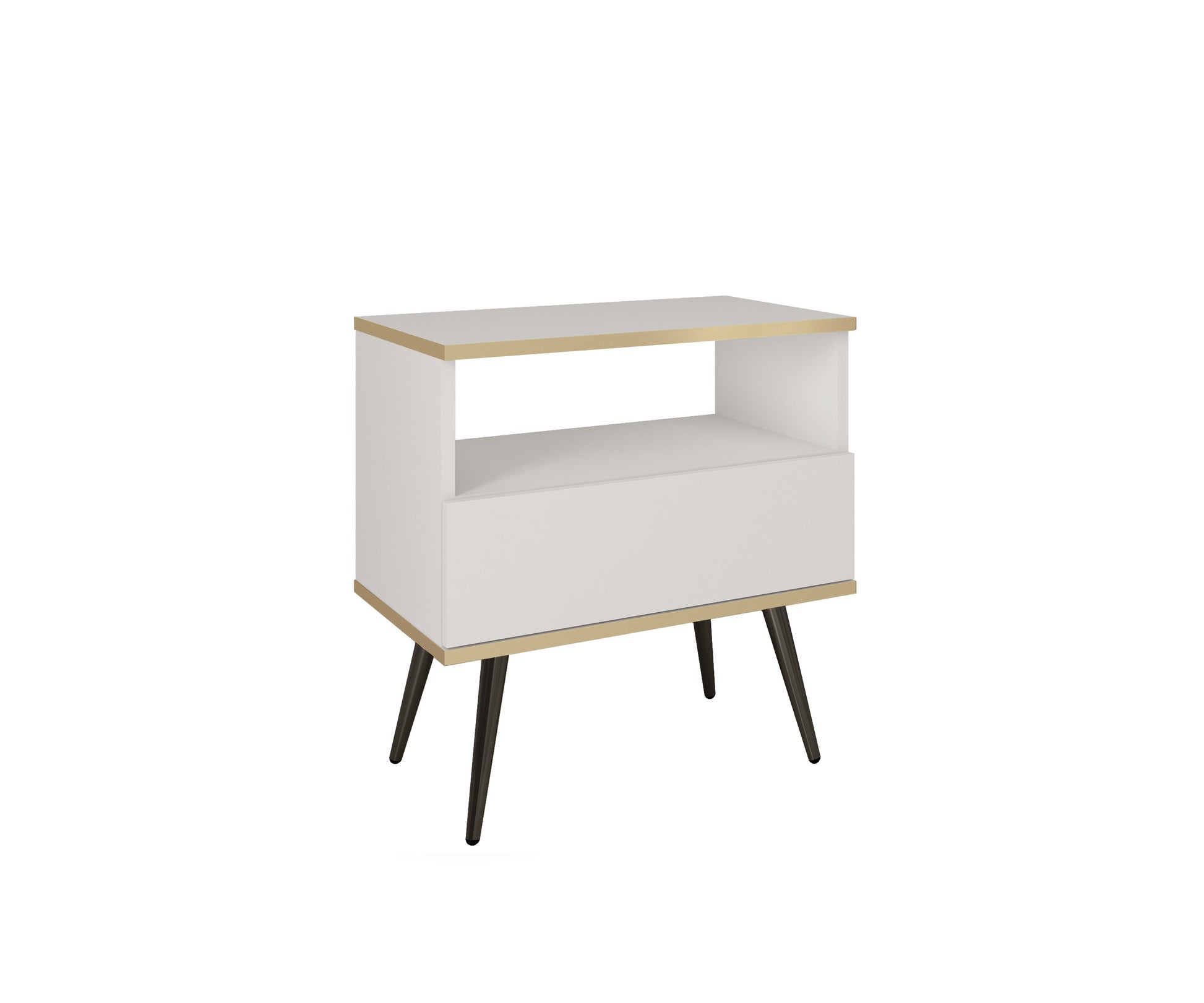 Oro S54 Nightstand in White with Black Legs
