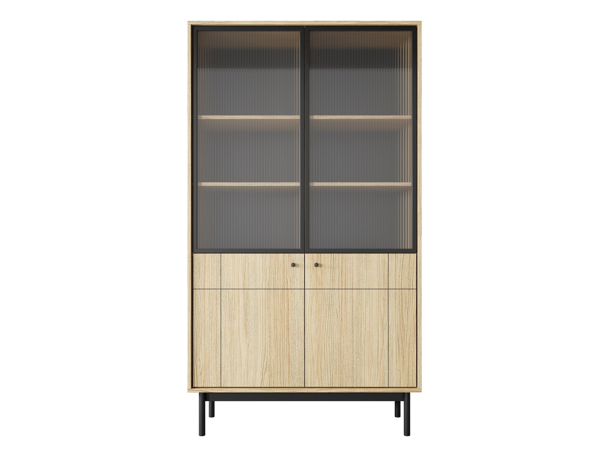 PI Japandi Bookcase with Glass Front WT104 in Oak Linea