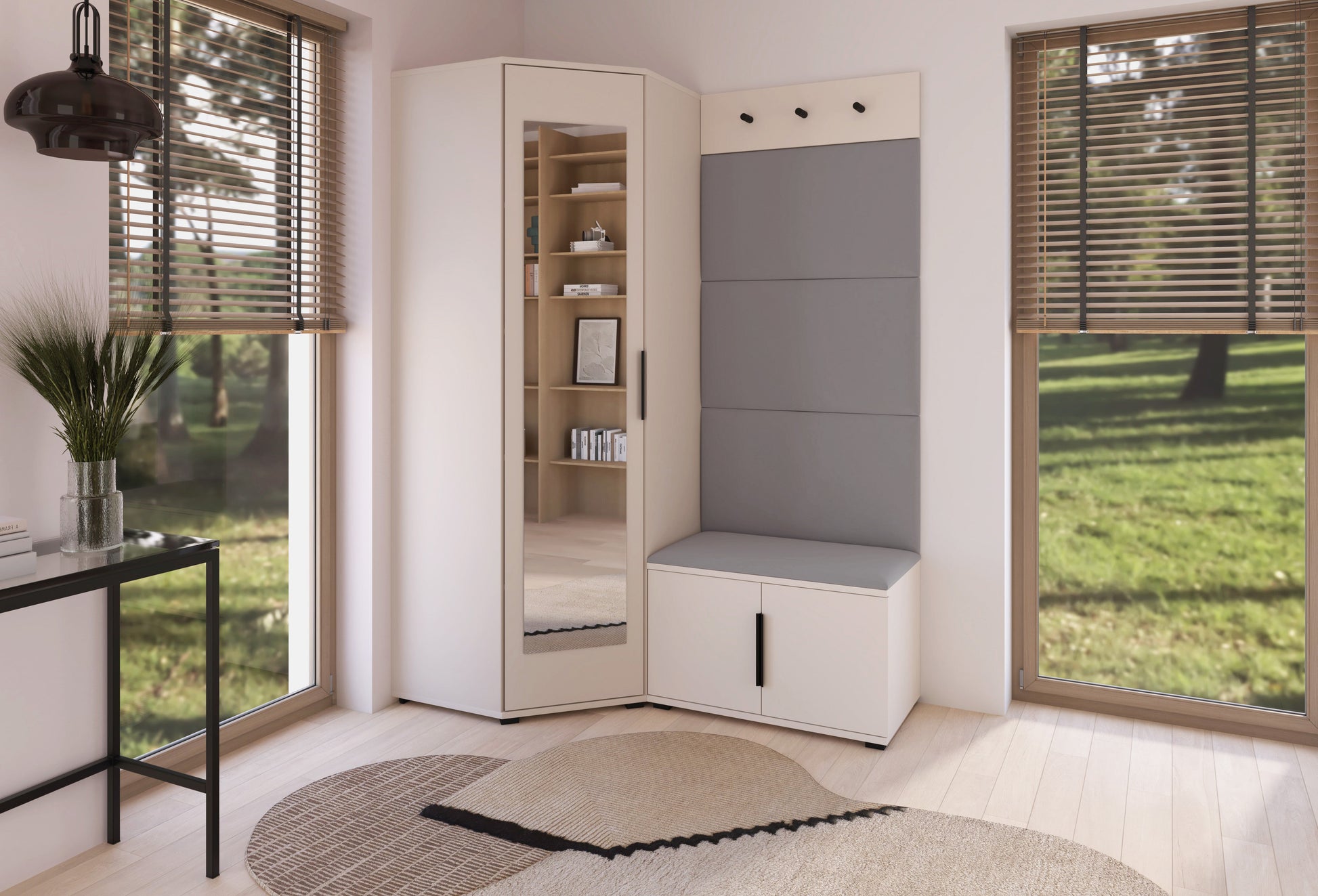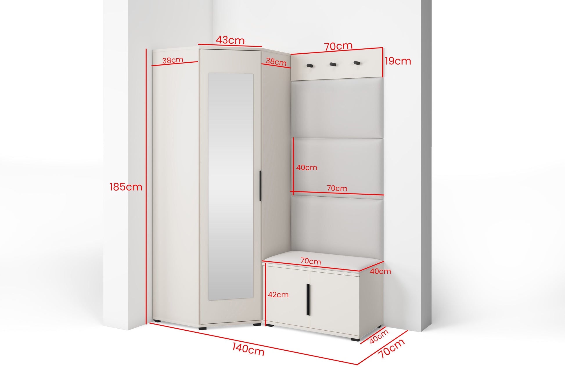 PK Bianco 17 Hallway Wardrobe Set - Upholstered Panels in Various Colours