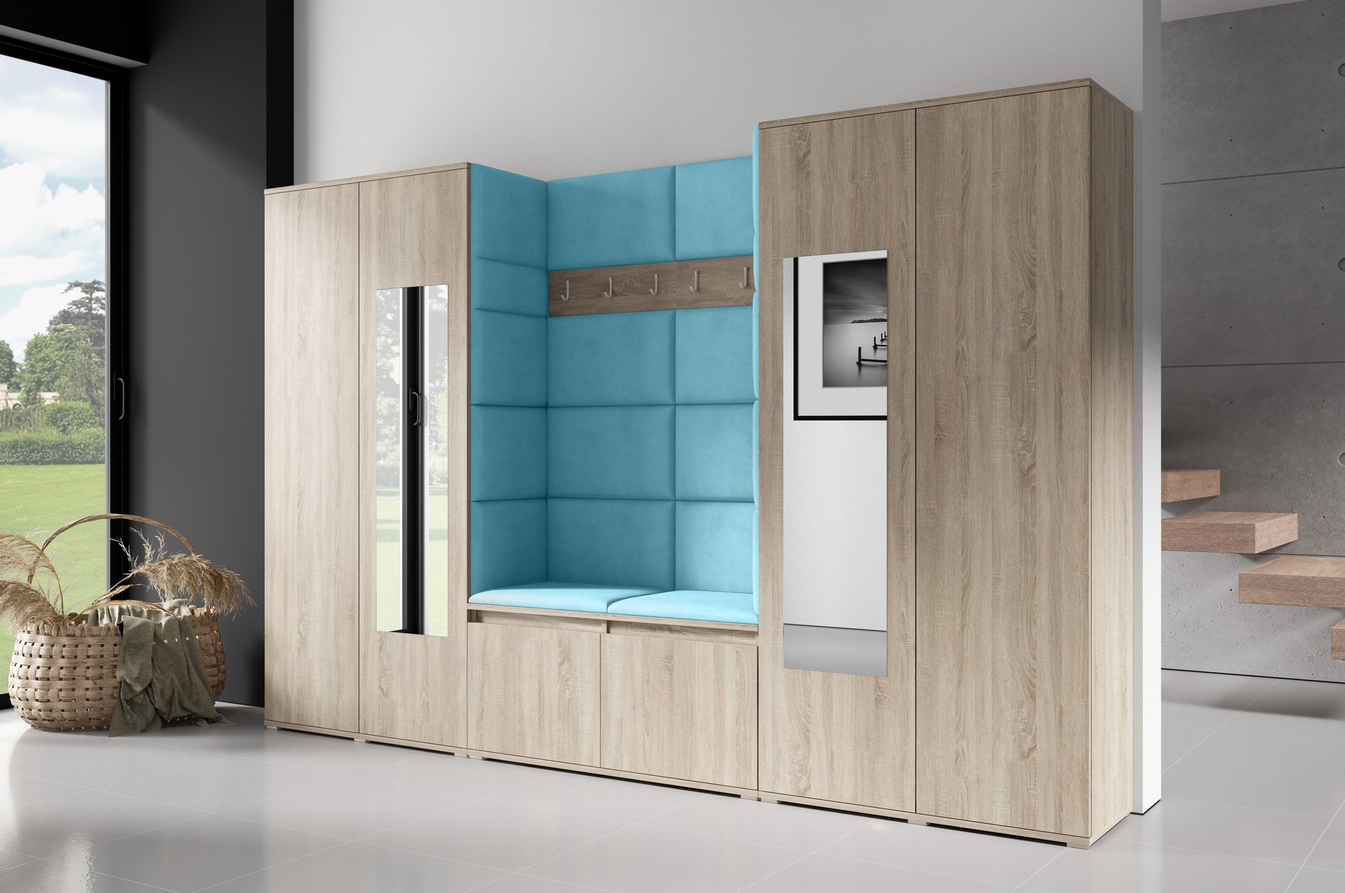 PK Emi 10 Hallway Wardrobe Sonoma- Upholstered Panels in Various Colours