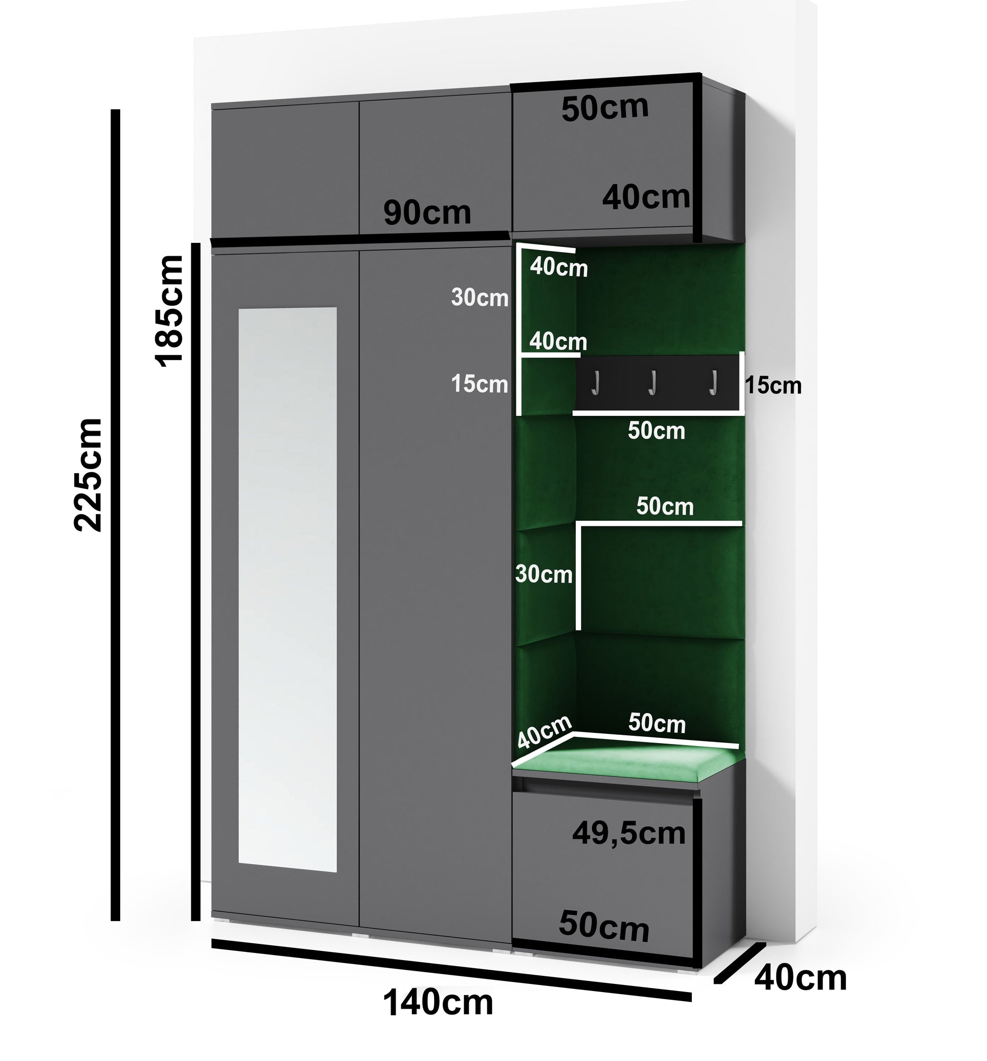 PK Emi 18 Hallway Wardrobe Artisan Oak / Black - Upholstered Panels in Various Colours
