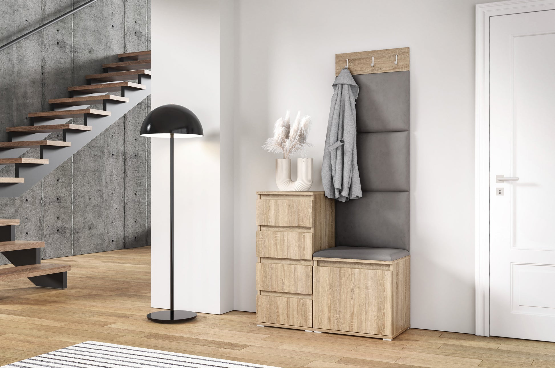 PK Emi 36 Hallway Wardrobe Sonoma Oak - Upholstered Panels in Various Colours