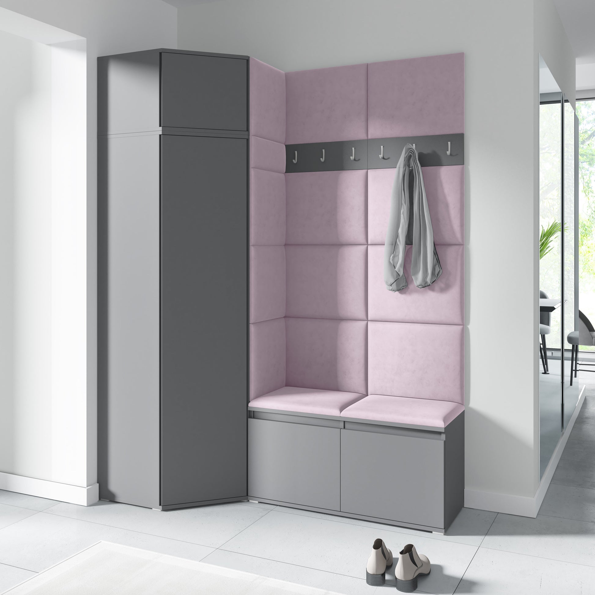 PK Emi 37 Hallway Wardrobe Graphite - Upholstered Panels in Various Colours