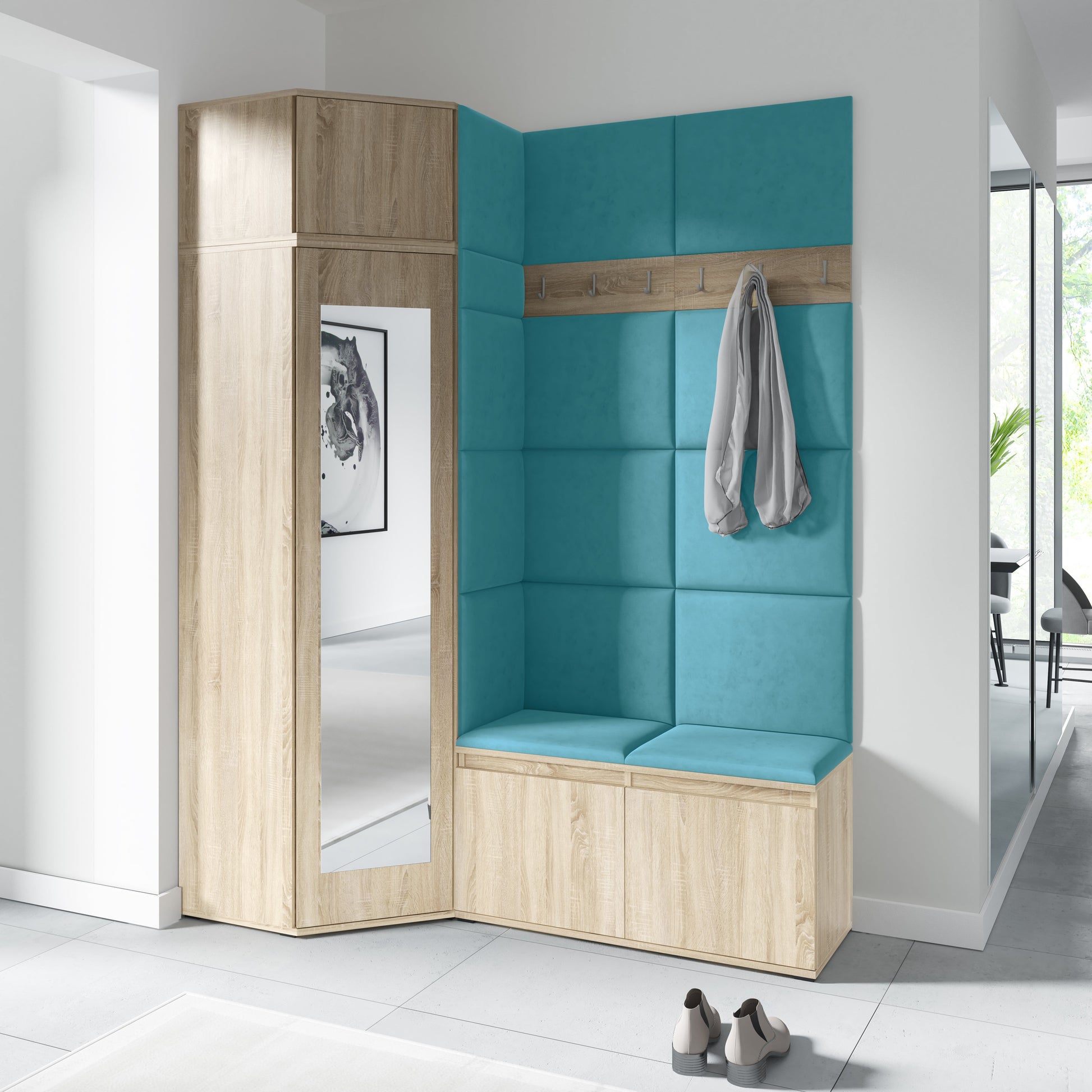 PK Emi 37 Hallway Wardrobe Sonoma Oak- Upholstered Panels in Various Colours