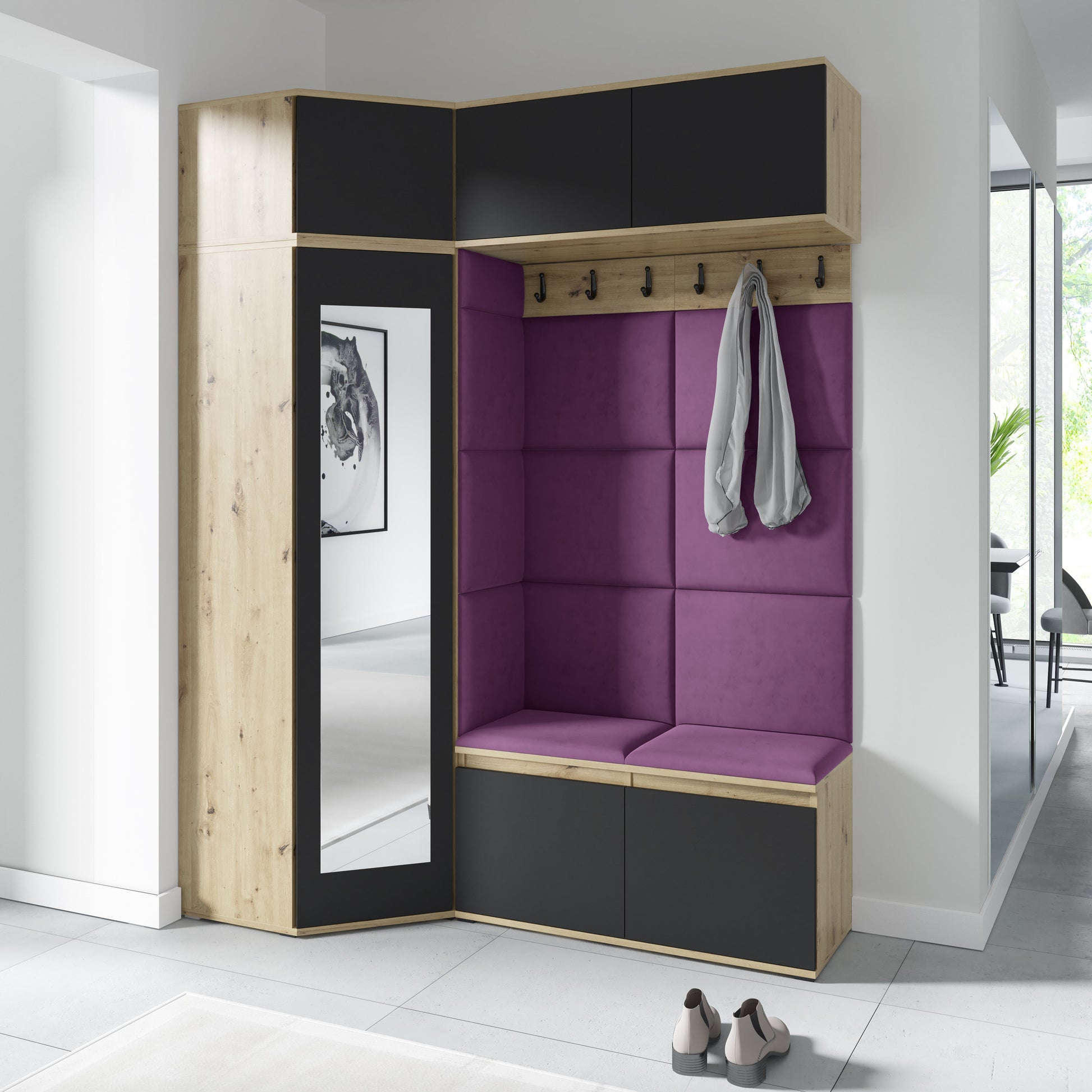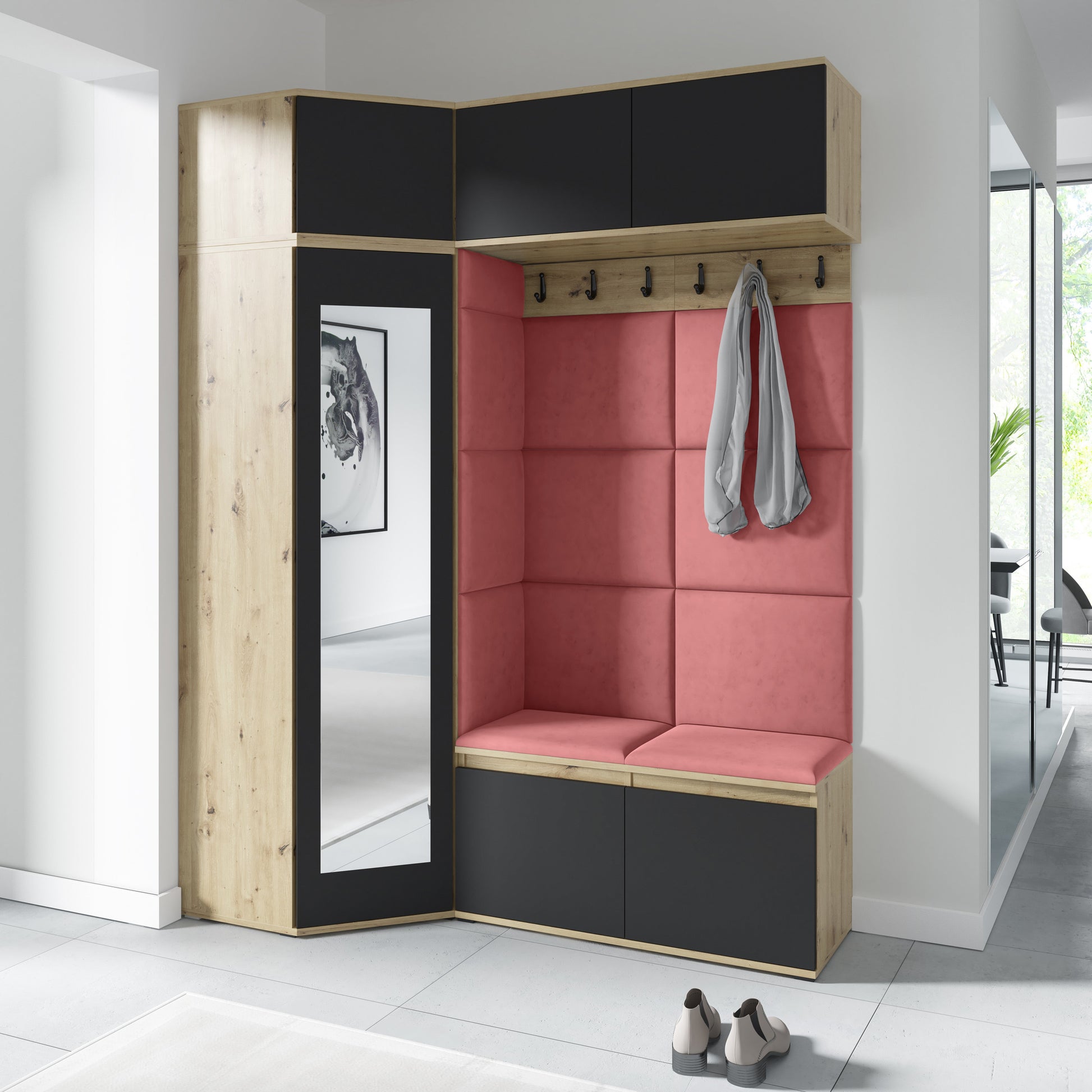 PK Emi 38 Hallway Wardrobe Aristan Oak\Black - Upholstered Panels in Various Colours