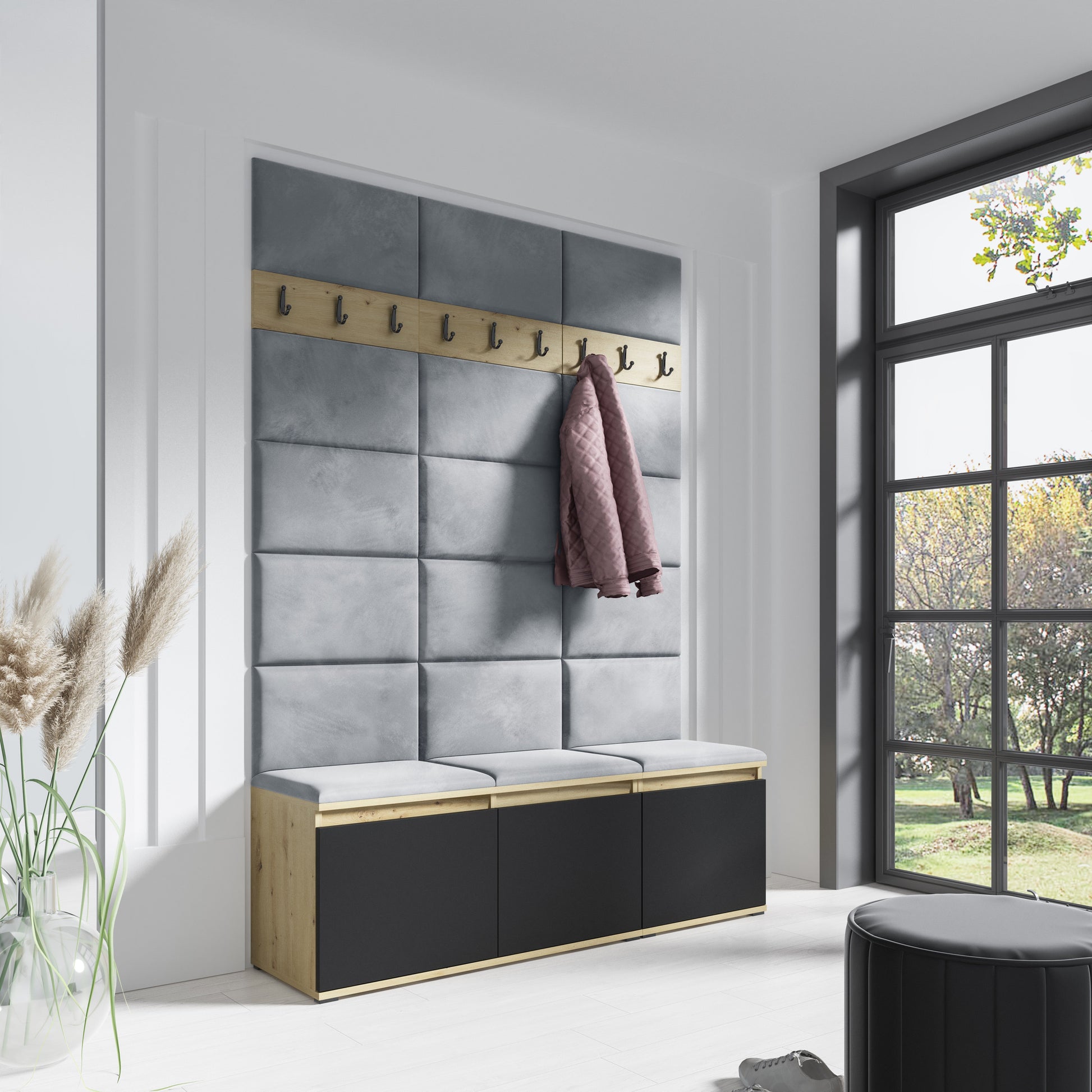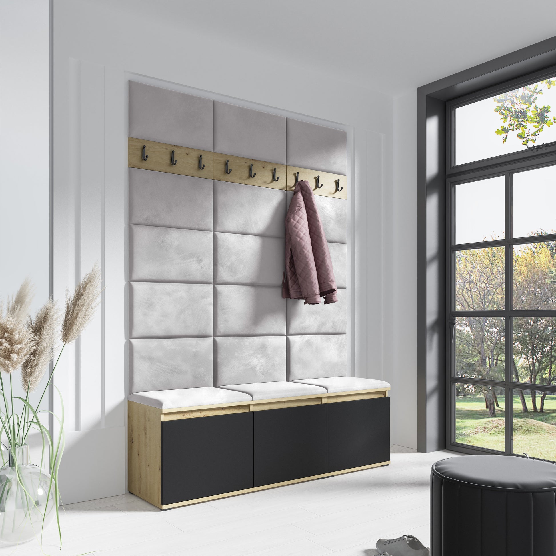 PK Emi 6 Hallway Wardrobe Artisan Oak / Black - Upholstered Panels in Various Colours