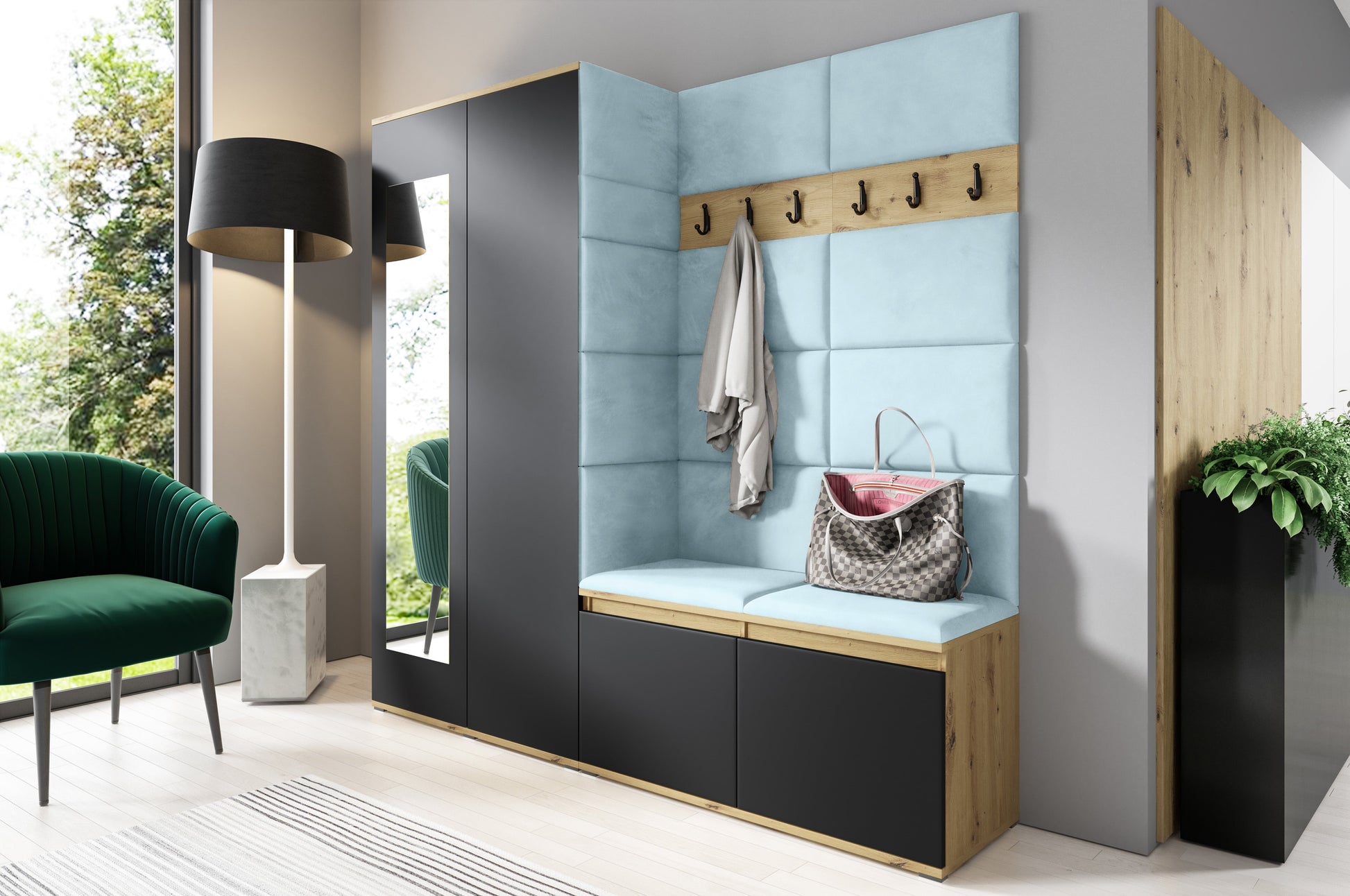 PK Emi 8 Hallway Wardrobe Artisan Oak / Black - Upholstered Panels in Various Colours